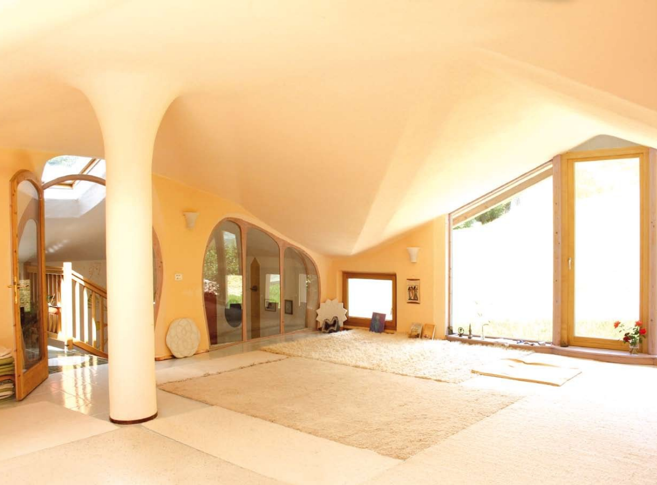 Auf dem Foto ist ein Meditationsraum in Lundo zu sehen. Alle Formen und Proportionen sind